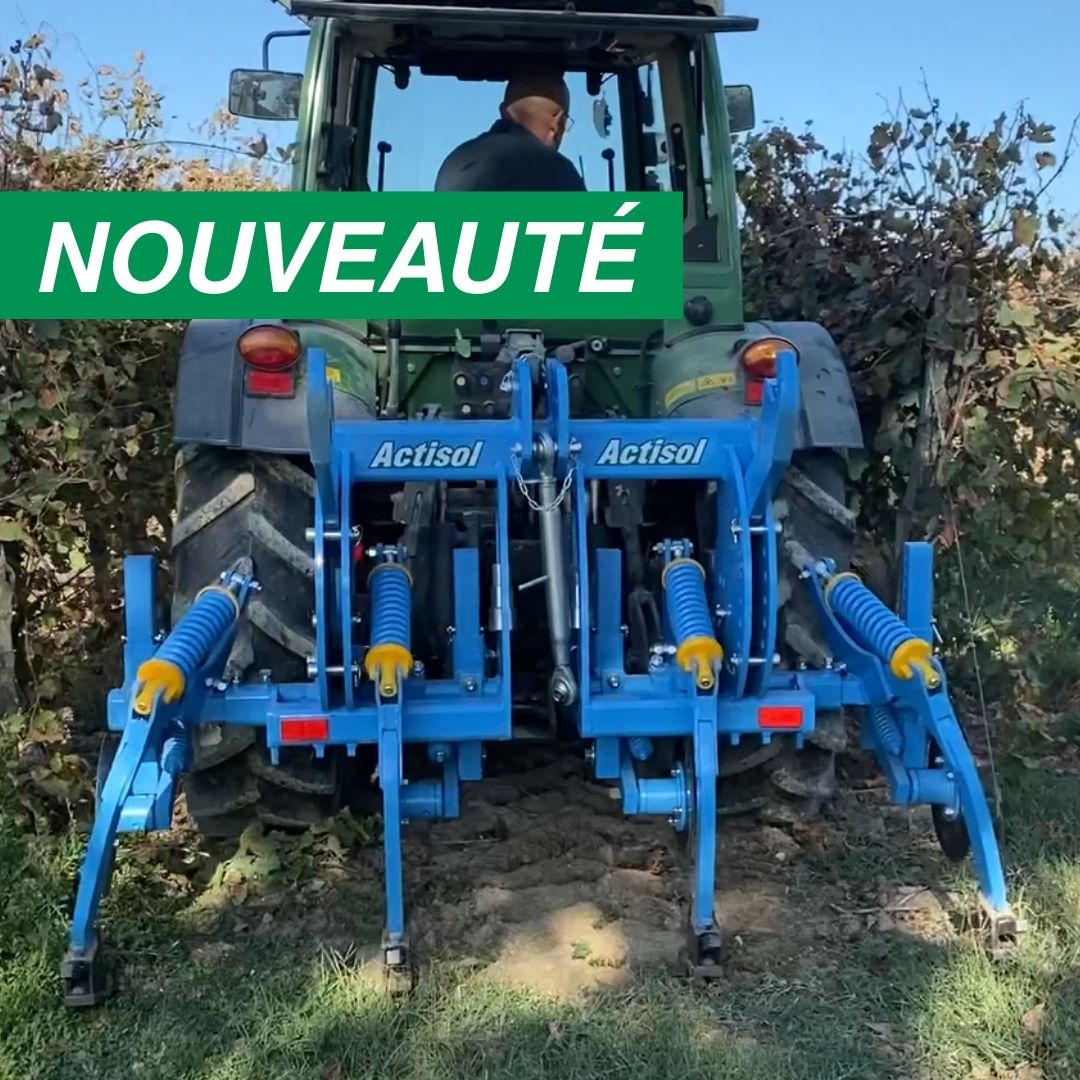 The Actimixt Vigne B2 deeply cracks compacted soils to restore their structure and promote infiltration. water and secure the agronomic potential of your plots. Thanks to its rear hitch, it can be combined  easily with an animated or non-animated tool, in order to achieve several operations in a single pass. Its design  modular and versatile with sliding extensions allows the working width to be adjusted to suit each situation. Equipped with opener discs and a tyre roller, it becomes Herbasol for effective cracking under cover. plant